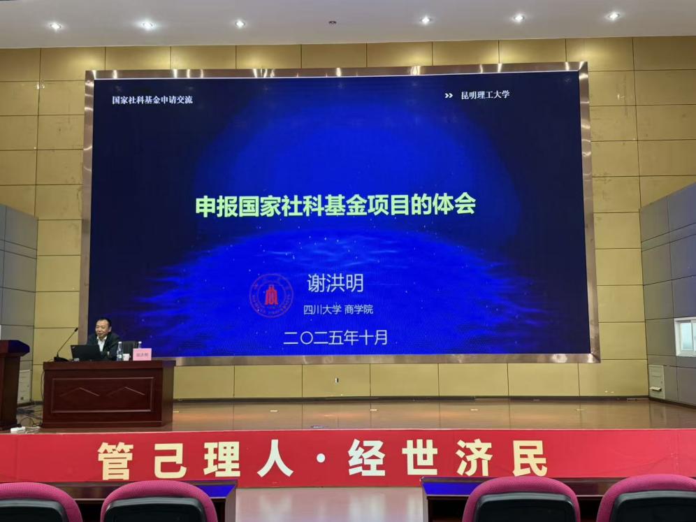 2025年10月16日,四川大学商学院海纳特聘教授谢洪明应邀到我校开展国家社科项目申报辅导,并...